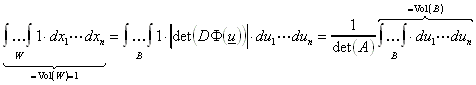 Beispiel: Gesucht wird das neue Volumen Vol(B) eines Parallelepipeds B, das durch eine affin-lineare Abbildung u = Ax + b eines Einheitswürfels W entstanden ist.