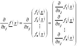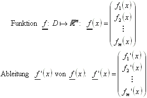 Die partiellen Ableitungen einer solchen Funktion werden nur komponentenweise erklärt. Es gilt: