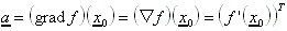 Als Gradient der Funktion f in x0 wird dieser (transponierte)Vektor a bezeichnet: