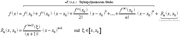 Ist die Funktion f(x) (n+1)-fach differenzierbar, so gilt für deren Taylorpolynom: