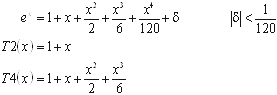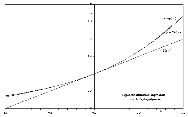 Beispiel: Taylorformel um x0 = 0 für die Funktion f(x) = ex innerhalb des Intervalls [-1,1].