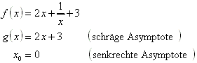 Beispiel: (Graph s. rechts) Asymptoten an die Funktion f(x):