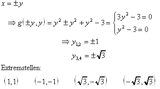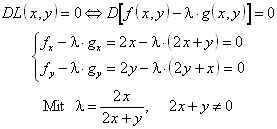 Formuliert man die Aufgabenstellung gemäß der Lagrangeschen Multiplikatorregel um, so ergibt sich (Kreisgleichung) unter der Bedingung, daß